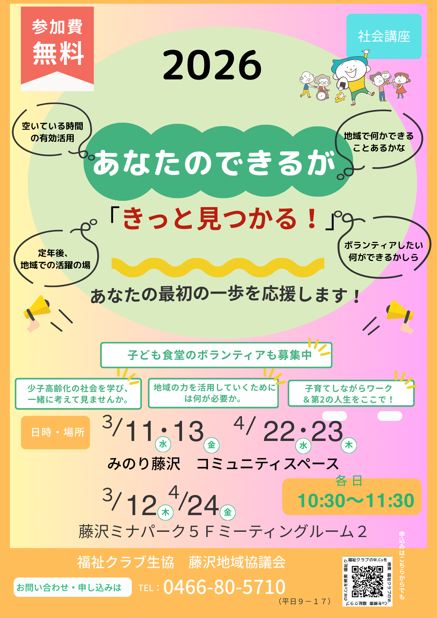 藤沢 あなたのできる!がきっと見つかる 社会講座開催【2026年3/11~13、4/22~24】