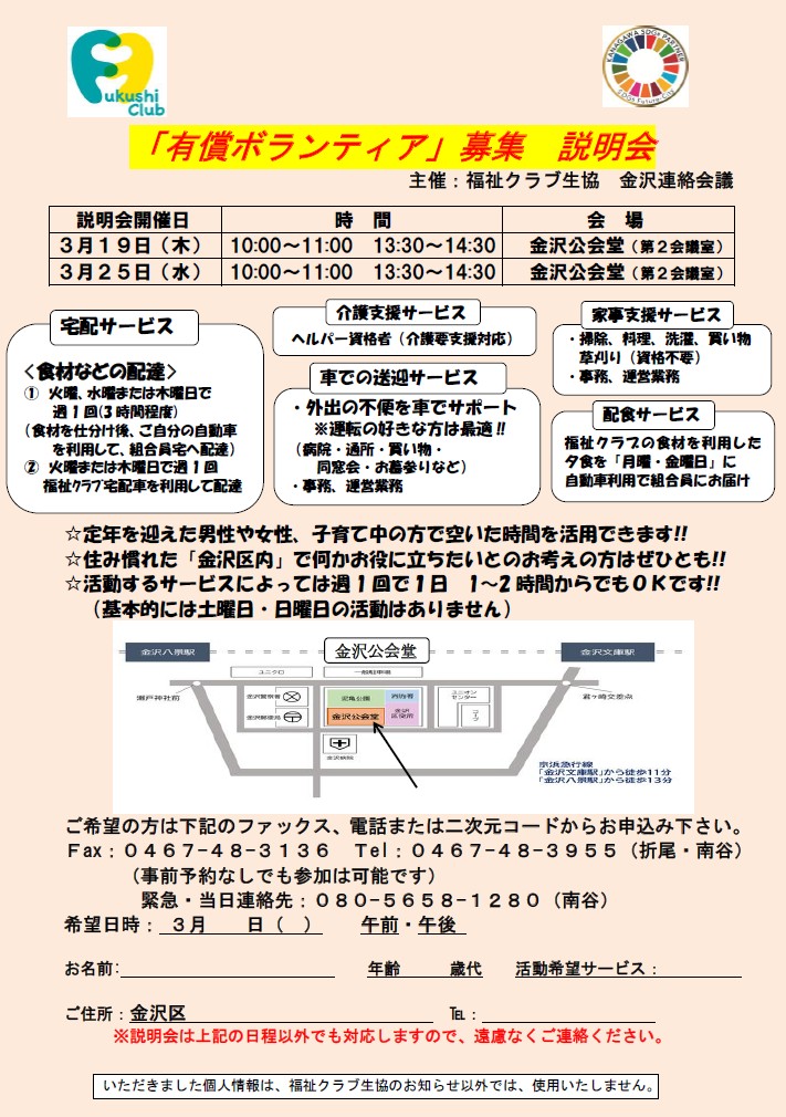 金沢区 有償ボランティア募集説明会【20206年3/19、25】