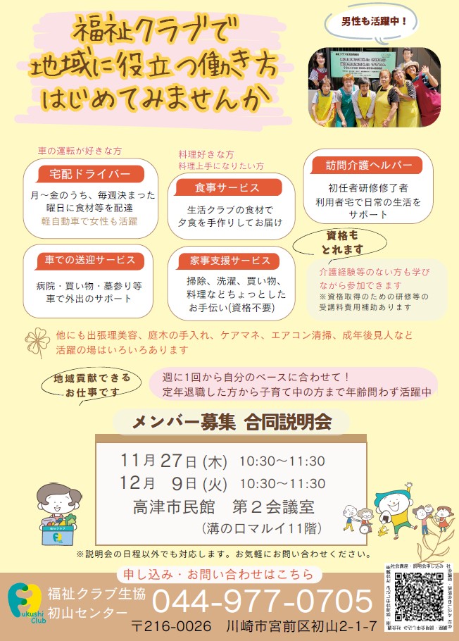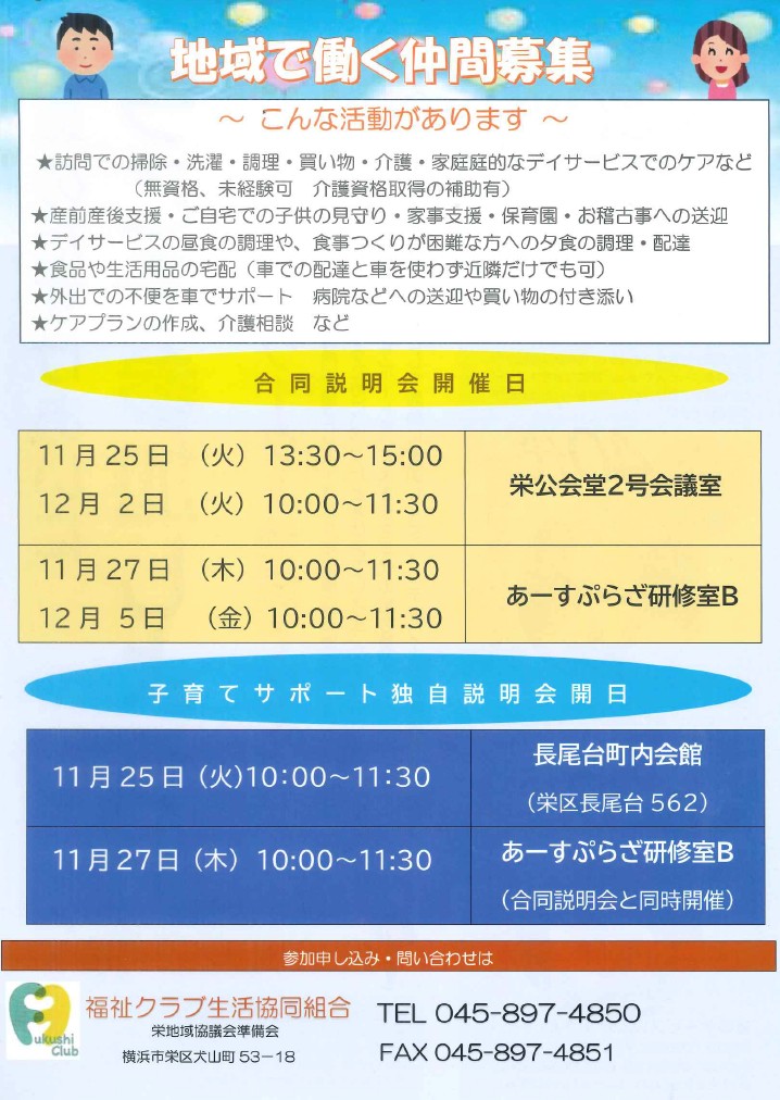 栄区で 働く仲間募集【11・12月】