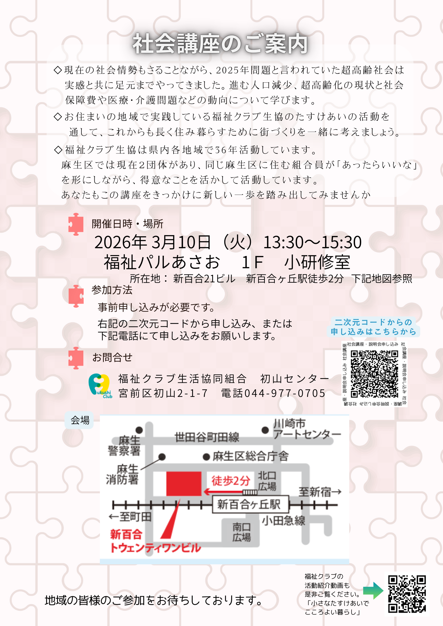 麻生区 訪問家事介護 メンバー募集【2026年3/25】社会講座【3/10】