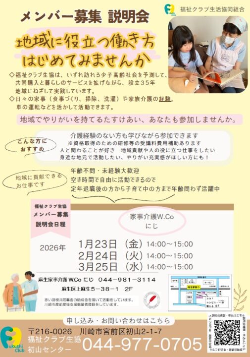 麻生区 訪問家事介護 地域に役立つ働き方はじめてみませんか【2026年1・2・3月】