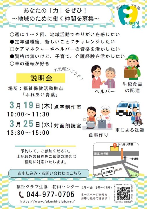 青葉区 地域で働く仲間募集【2026年2/28、3/19、25】