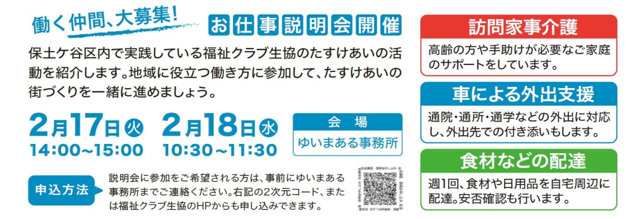 保土ヶ谷区 お仕事説明会 2月17日(火)14:00~15:00 ゆいまある事務所