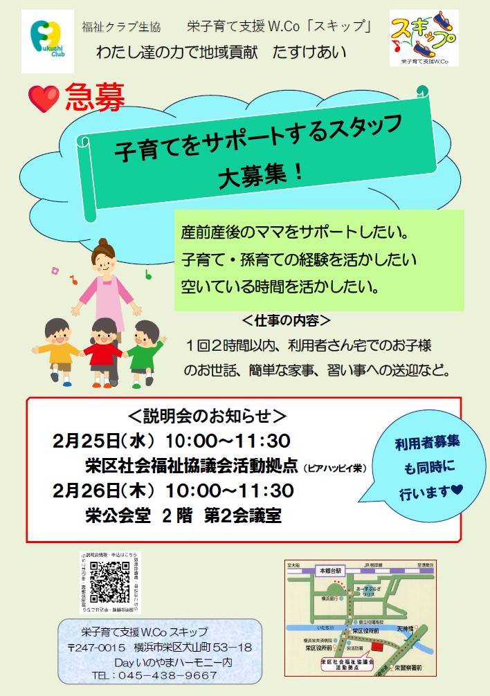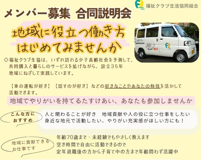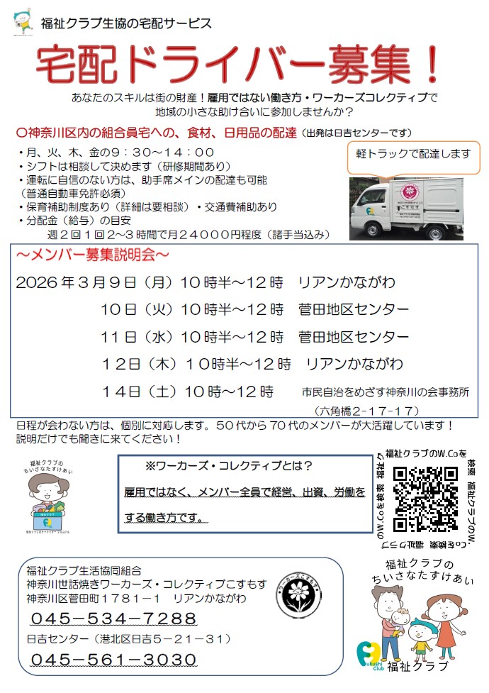 栄区 福祉クラブ生協W.Co合同説明会【2026年2/26、27、3/2、6】