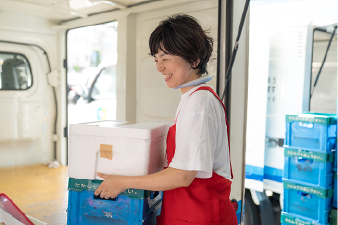 配達から戻り、回収した箱や宅配車の整理など。